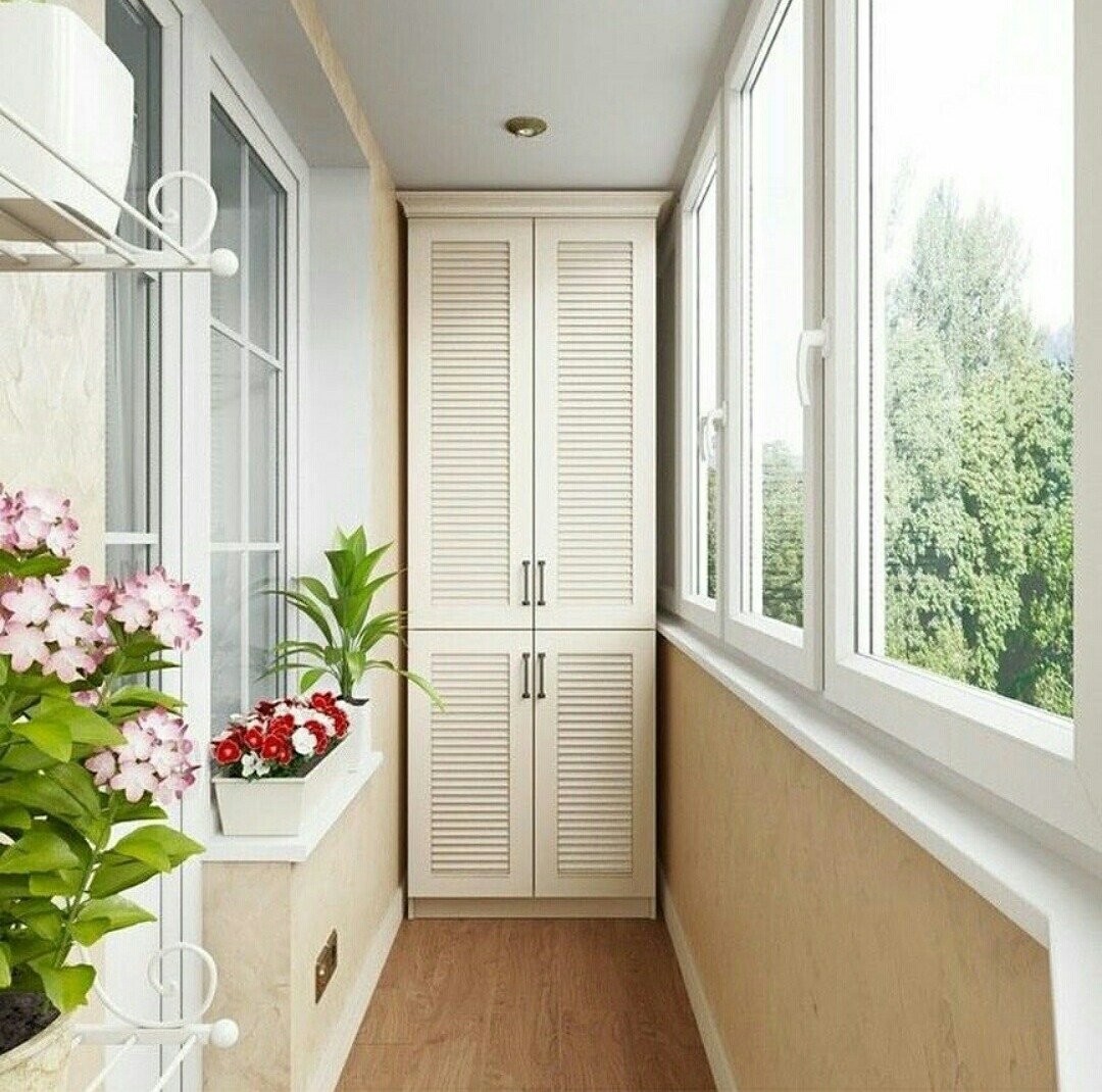 Угловое расположение балкона или лоджии упрощает отделку и остекление. Глухая стена – хорошая зона для монтажа встроенного шкафа. Количество створок, их функциональность определяются шириной секции.